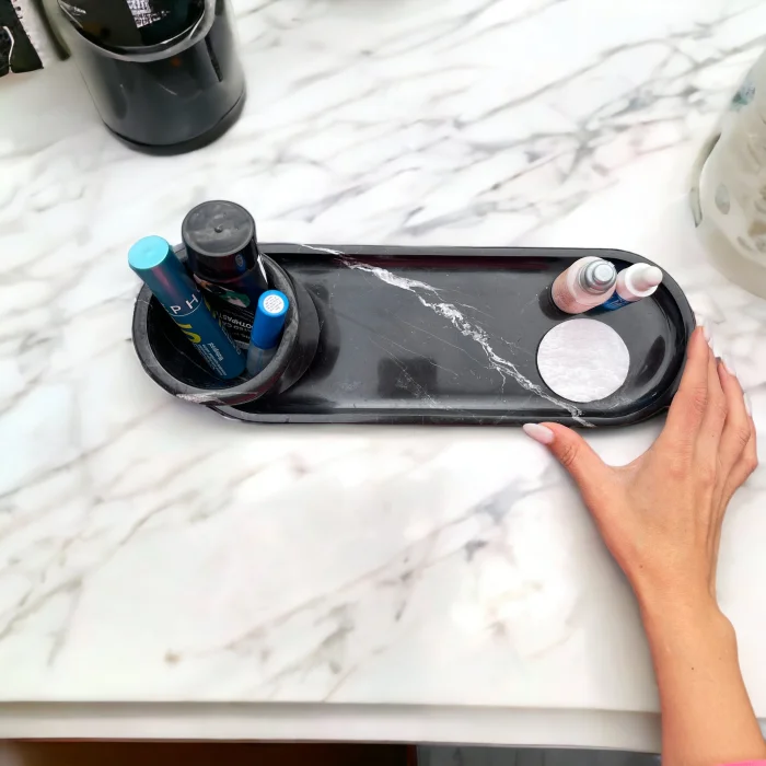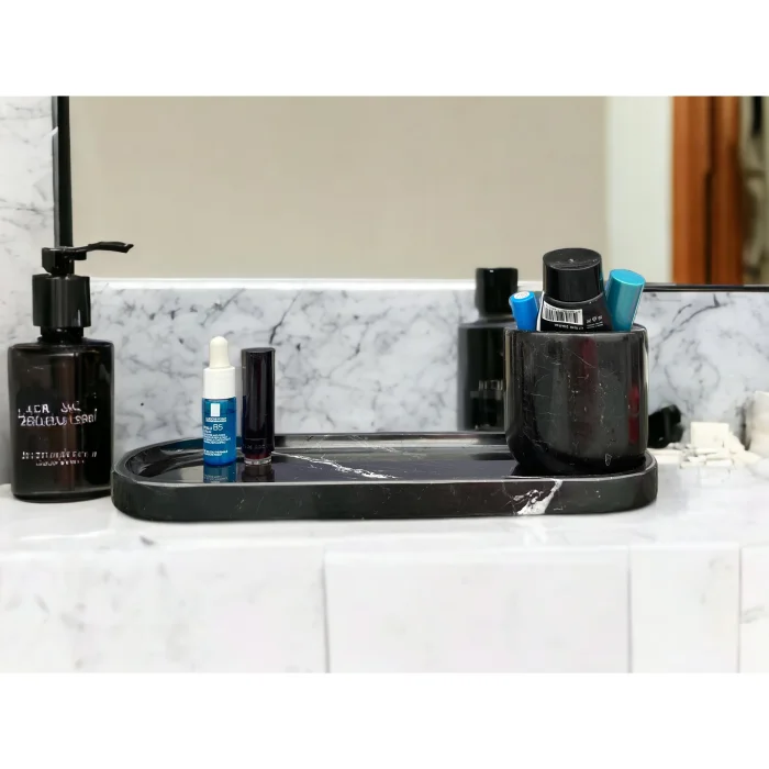- Malzeme : Siyah üzeri beyaz damarlı mermer