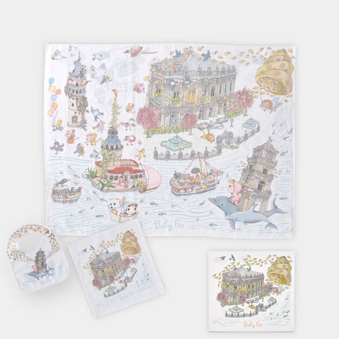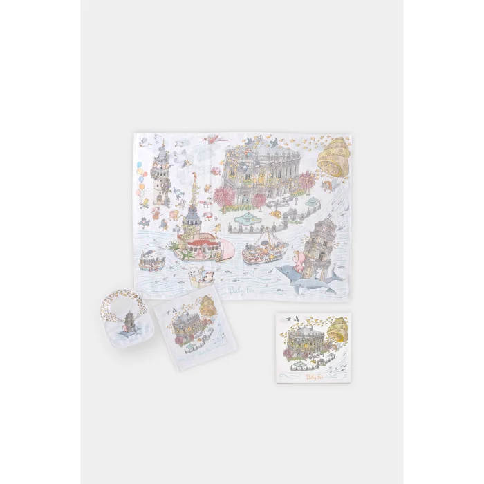 Ürün: İstanbul 3'lü Hediye Seti(battaniye&önlük&ağız Bezi)