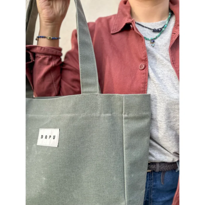 Su itici özelliği bulunan mumlu kanvas kumaştan yapılan bu çantayı dört mevsim kullanabilirsiniz. İçinde fermuarlı cep ve anahtarlar için halka aksesuar vardır.