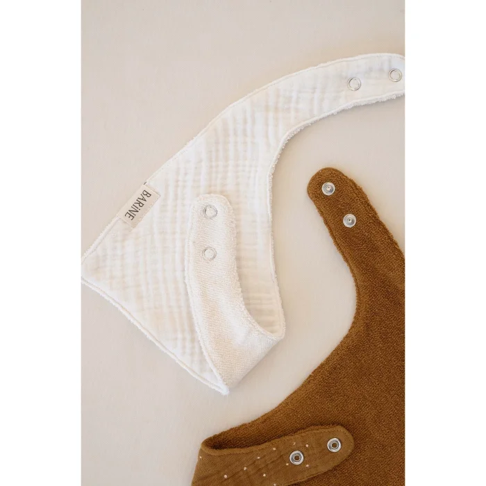 Bandana Şeklinde Bebek Önlüğü 2’li Set, hem şıklığı hem de fonksiyonelliği bir arada sunar.; Önde yumuşak müslin kumaş, arkada emici bukle kumaş ile tasarlanan bu önlükler, bebeğinizin hassas cildine dosttur.; Çıtçıtlı ve ayarlanabilir yapısıyla pratik kullanım sağlar.; Günlük kullanım için ideal olan bu set, hem konfor hem de stil sunar.