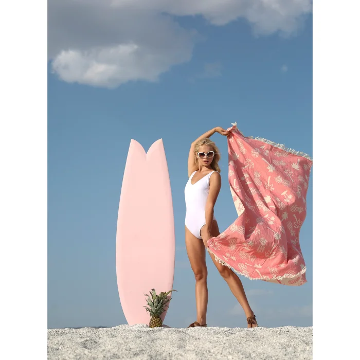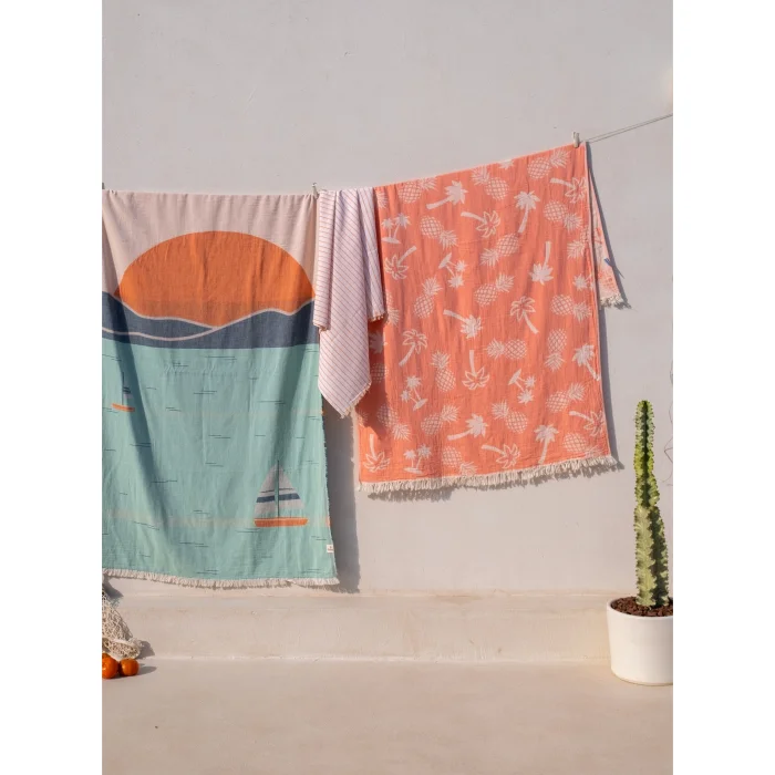 Palmsprings Peştemal, yazın keyfini çıkarırken size maksimum rahatlık sunmak için tasarlanmış, çift taraflı kullanılabilen dayanıklı bir seçenektir. %100 pamuk dokusu, yumuşaklık ve nefes alabilirlik sağlayarak vücudunuzu sarar, plajda veya havuz kenarında konforlu bir deneyim yaşatır. Yıkanmış (pre-washed) kumaşı, ekstra yumuşaklık sunarken, Oeko-Tex sertifikası ile güvenli ve çevre dostu bir kullanım sağlar. Hem şıklığı hem de fonksiyonelliğiyle ideal bir plaj arkadaşıdır.