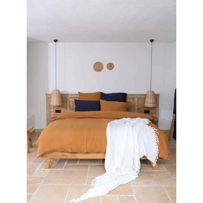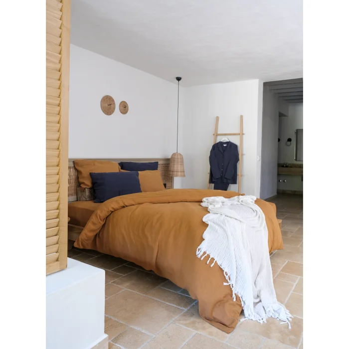 Washed Linen Nevresim, %65 keten ve %35 pamuk karışımının mükemmel uyumunu sunar. Yıkanmış keten dokusu, serin ve gevrek bir his yaratırken, uzun elyaf pamuk ise sonsuz yumuşaklık sağlar. Bu nevresim, zarif ve hafif yapısıyla sıcak yaz günlerinden serin gecelere kadar rahatlıkla kullanılabilir. Her ürün, özel olarak yıkandıktan sonra, benzersiz bir görünüm kazanır ve önceden çekilerek size sunulur. Ayrıca, şık kesesi ile seyahatlerinizde veya ev içi düzenlemelerinizde de kullanılabilir.