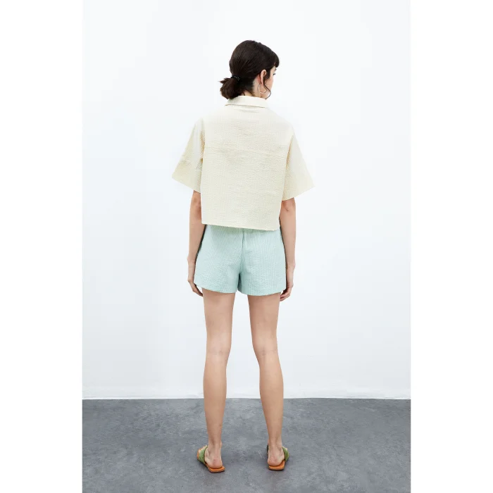 %100 Pamuk kısa gömlek. Önde düğmeleri mevcuttur. Model 1.79 boyunda Small beden giymektedir. Normal bedeninizi tercih edebilirsiniz. BSGWFBPJCSH03
