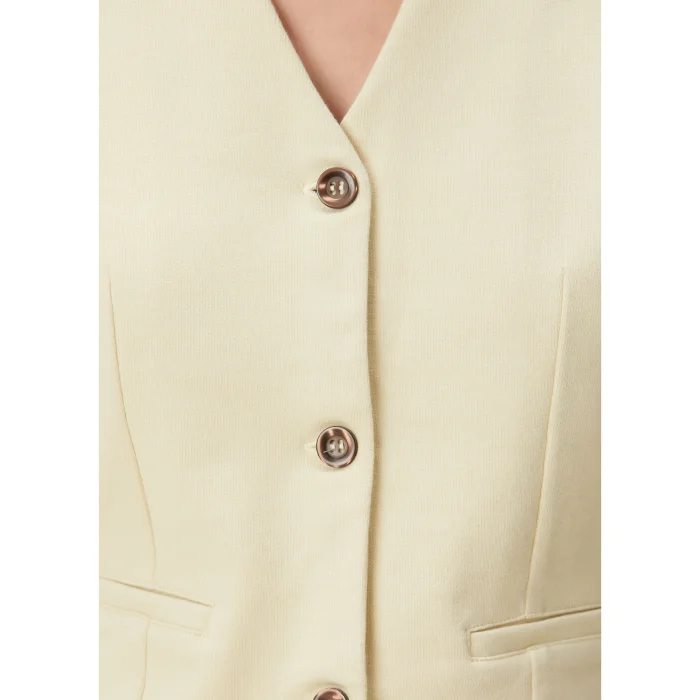 %89 İyi Pamuk %9 Geri Dönüştürülmüş Polyester 2 %Elestan kolsuz yelek. V Yaka, 3 düğmeli açılabilir cepli. Model 1.79 boyunda Small beden giymektedir. Kendi bedeninizi tercih edebilirsiniz. BSGWFBJWC03