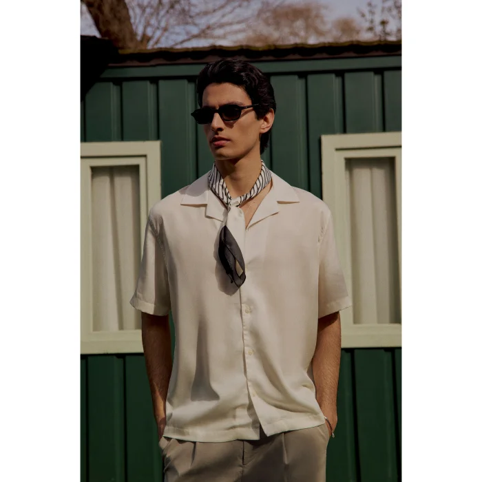 Relaxed fit %100 tensel küba yaka kısa kollu gömlek