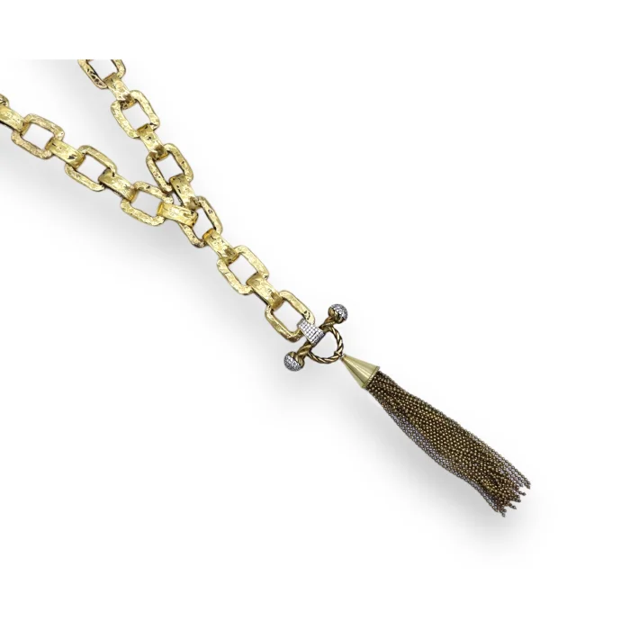 Üretim Şekli : El Yapımı Kolye Materyal : 22 ayar altın kaplama pirinç Uzunluk : 66 cm + 5 cm uzatma zinciri