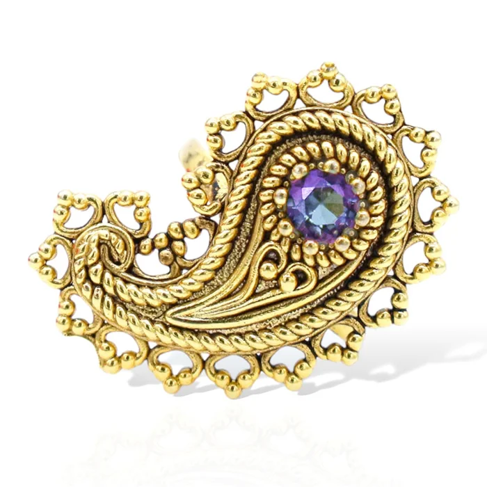 Üretim Şekli : El Yapımı Yüzük Materyal : 22 ayar altın kaplama pirinç, kristal taş Uzunluk : 2,5 cm Ağırlık : 6 gr