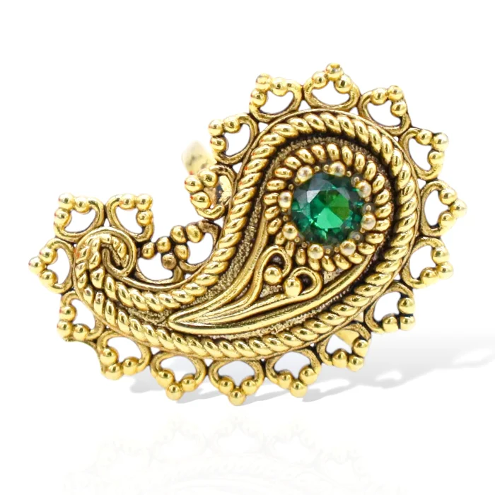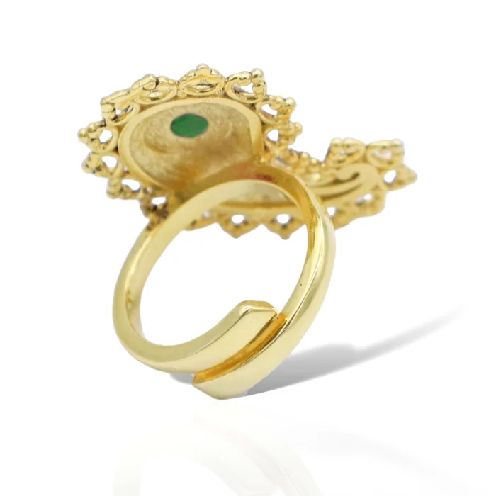 Üretim Şekli : El Yapımı Yüzük Materyal : 22 ayar altın kaplama pirinç, kristal taş Uzunluk : 2,5 cm Ağırlık : 6 gr