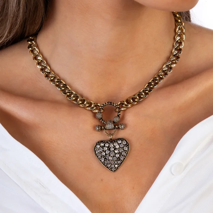 Üretim Şekli : El Yapımı Materyal : 22 ayar altın kaplama pirinç zincir, 22 ayar altın kaplama pirinç materyal, zirkon taşlı kalp Uzunluk : 40 cm + 5 cm Ağırlık : 68 gr