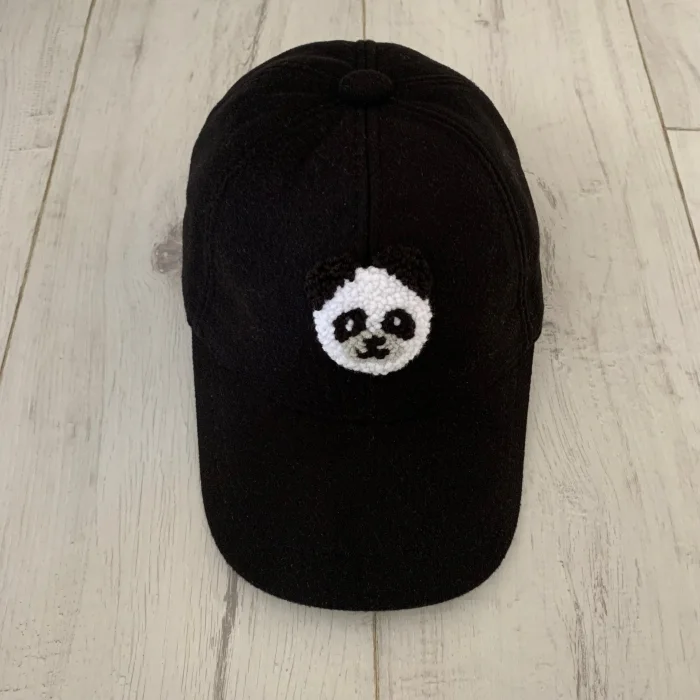 Siyah Kaşe Kışlık Şapka Panda punch detaylı