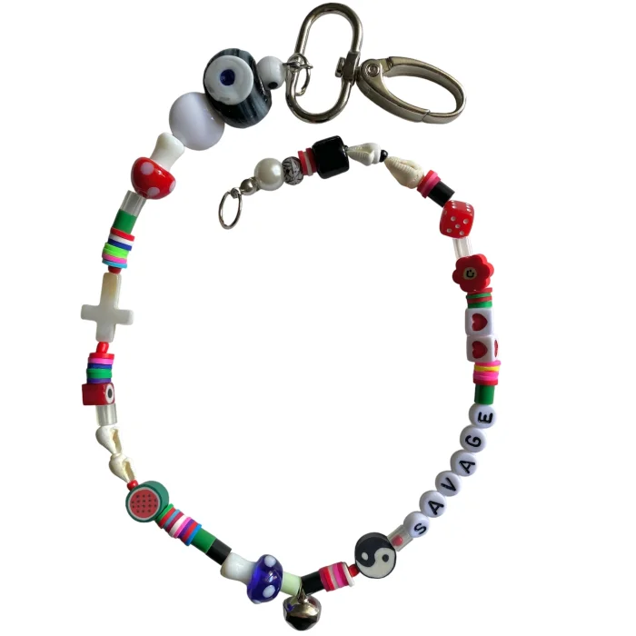 Murano cam sanatı işçiliğiyle hazırlanmış cam boncuklardan tasarlanmıştır.Malzeme: Fimo, cam boncuk, sedef, murano cam