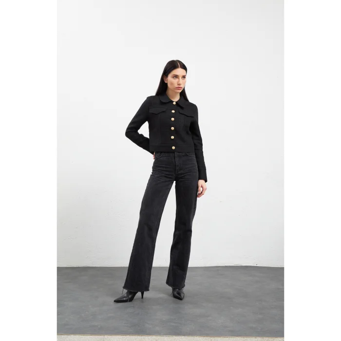 Siyah tüvit kumaş, kendinden silver geçişlidir