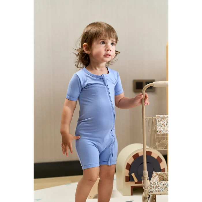 Ürün: Organik Bambu Kısa Kollu Tulum - Çift Taraflı Fermuar, Nefes Alabilen Kumaş