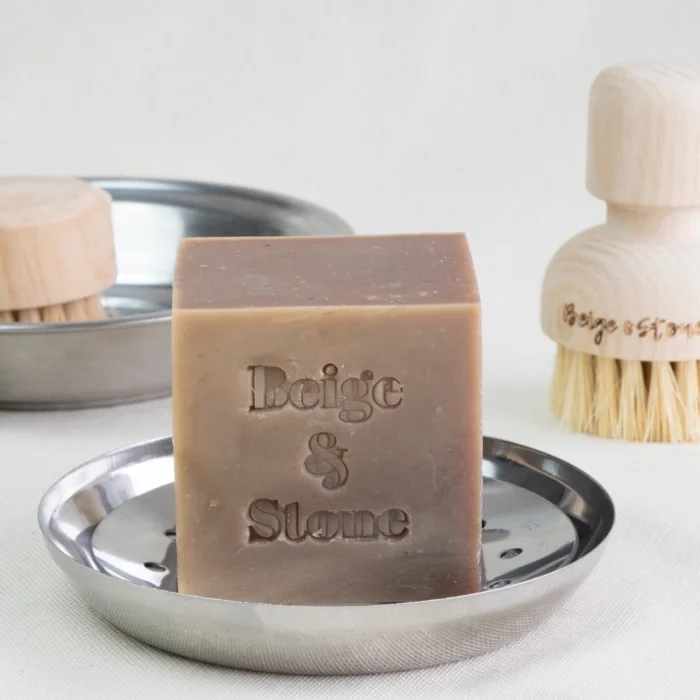 Doğal Mutfak Seti 3 lü Sandal Ağacı Yağlı Katı Bulaşık Sabunu 200 Gr Çelik Sabunluk & Fırça