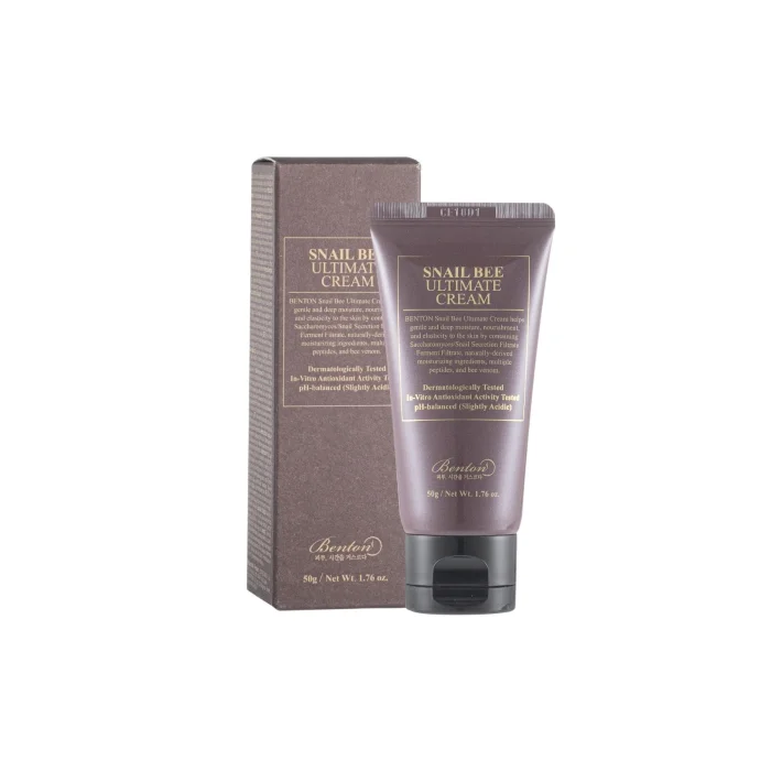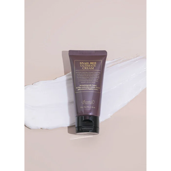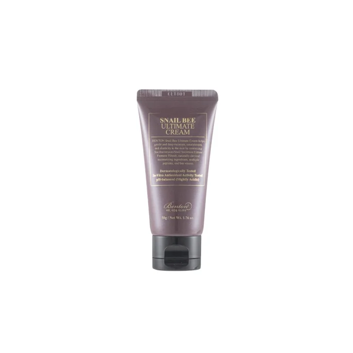 Seramid, skualan ve arpa tohumu cildi yatıştırmaya ve nemlendirerek dengelemeye yardımcı olur. Antioksidan ve anti-enflamatuar özellikleri ve cildi yatıştırıcı etkileriyle bilinen arı zehri cildin korunmasına yardım sunar. Cildi saran dokusuyla yoğun bir nem koruyucu bariyer oluşturan Snail Bee Ultimate Cream 50 g’in doğal formülü insan cildiyle uyumlu hafif asidik pH seviyesindedir. Kullanılan tüm ekstreler/musinler hayvanlara zarar verilmeden toplanır, formülü diğer tüm Benton ürünleri gibi cruelty-free olarak hazırlanır, şeker kamışı ve soya mürekkebi gibi geri dönüştürülmüş/dönüştürülebilir malzemelerle tasarlanan sürdürülebilir ambalajında sunulur.
