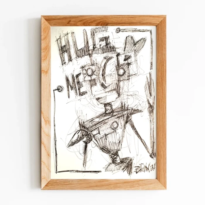 Birim Erol 2025 imzalı orijinal eser 21 x 29,7 cm boyutlarında 250 gr kuşe kâğıt üzerine mürekkep kullanılarak yapılmıştır.