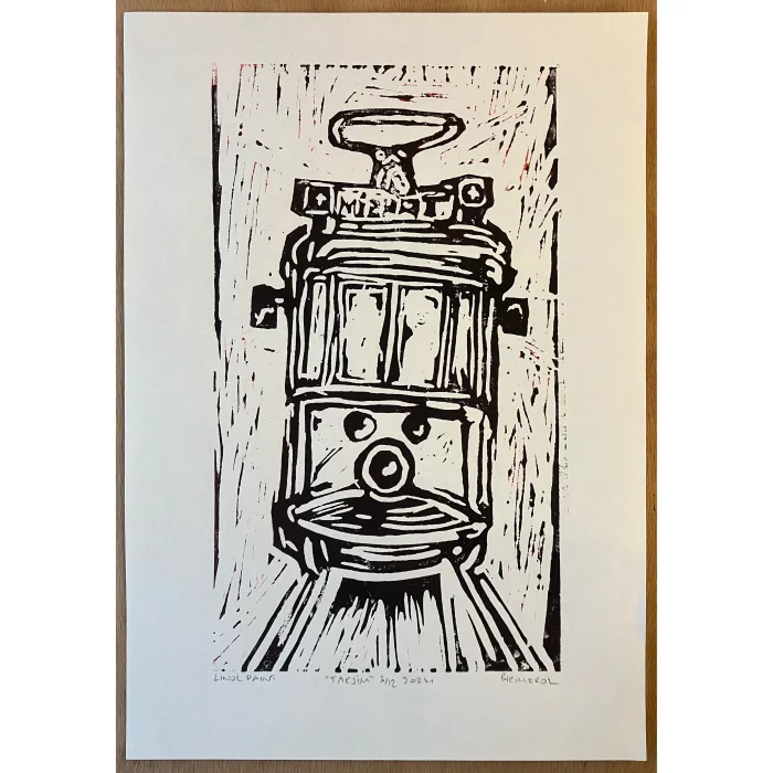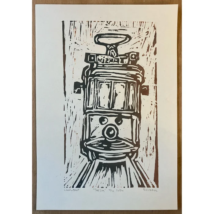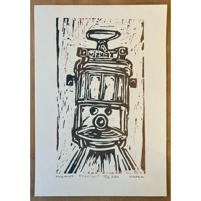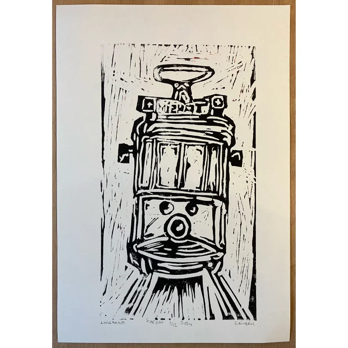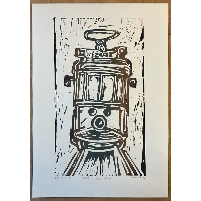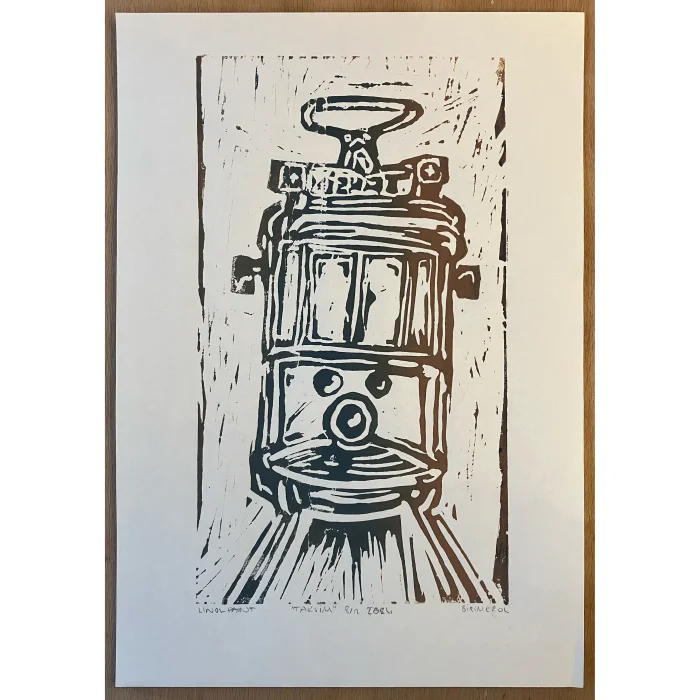 Birim Erol 2024 imzalı orijinal eser 21X30cm kraft kağıt üzerine linol baskı yöntemi ile 12 adet basılmıştır.