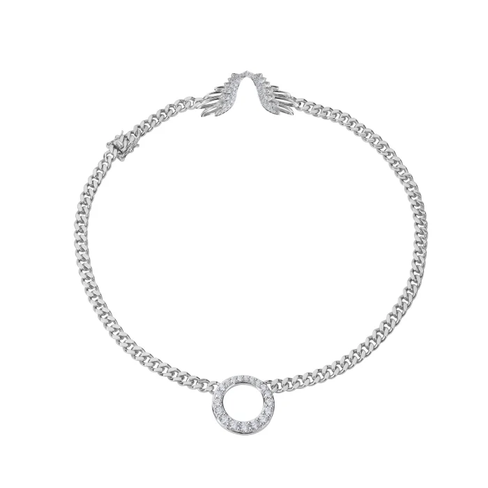 "You shine brighter than light, and take on new heights, you are an angel dressed in earthly clothes" Wear your 'Halo Wings' Archangel Choker™ in Sterling Silver with pride, as a reminder of your celestial identity. This elegant yet playful statement piece features a halo covered in scintillating lab-grown stones promising to illuminate your decolléte, all while the wings rest effortlessly on your back. The moissanite sourced for this necklace is lab-grown and conflict-free, beautifully refracting light to create a mesmerising sparkle. The perfect gift for her. Sold Individually. Chain length 15", Halo Diameter ~22mm © Design Copyrighted