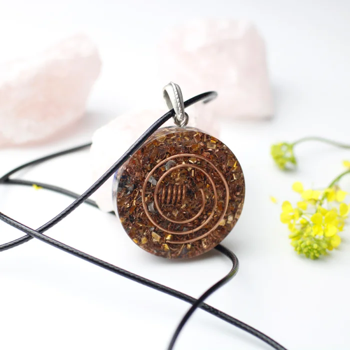 Doğal taşlar ve reçine ile yapılmış olup, çakra taşlarından oluşur. Şifalı, enerji dengeleyici özelliğiyle bilinen orgoniti boynunuzda taşıyarak ondan daha çok faydalanabilirsiniz.