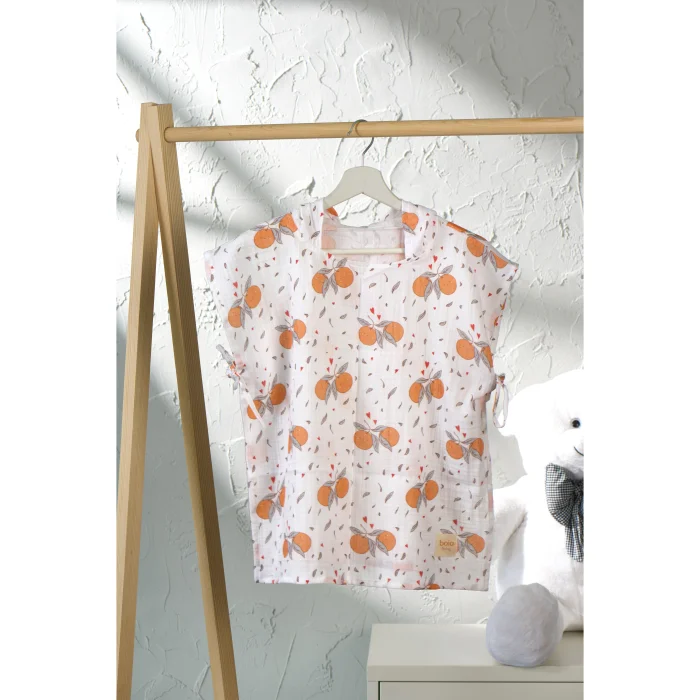 %100 organik pamuktan üretilmiştir. GOTS sertifikalıdır. Organik boyalar kullanılarak baskı yapılmıştır. Desenleri özel tasarımdır.