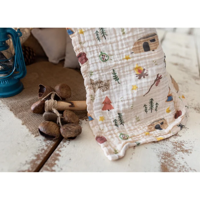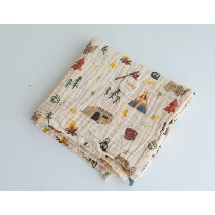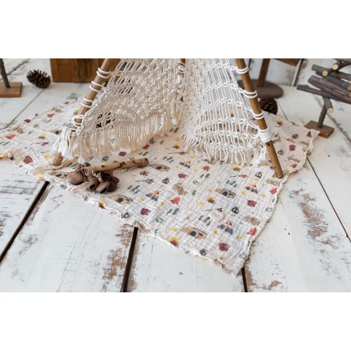%100 organik pamuktan üretilmiştir. GOTS sertifikalıdır. Organik boyalar kullanılarak baskı yapılmıştır. 100x100 cm ölçülerindedir. Desenleri özel tasarımdır.