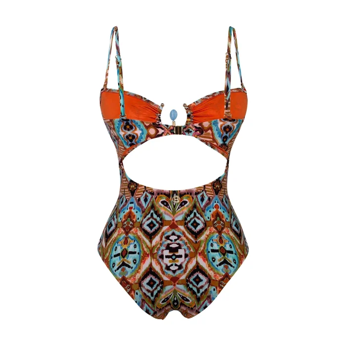 Halula Tapa Ethnic Pattern Aksesuarlı Pencereli Kaplı Mayo