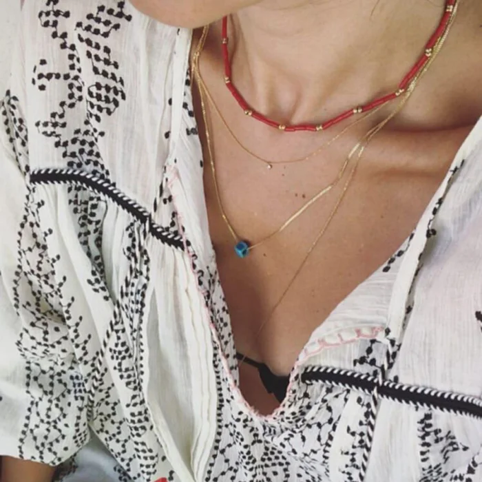 Cece Mercan Kolye, kırmızı Mercan doğal taşının verdiği renk ile en iddialı aksesuarınız olmaya aday! Altın ve kırmızının muhteşem uyumunu üzerinizden hiç çıkartmak istemeyeceksiniz.