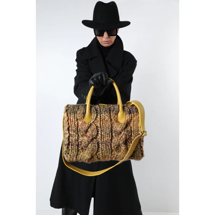 %100 yün iplik kullanılarak el örgüsü ,%100 buzağı derisi kullanılarak üretilmiştir.