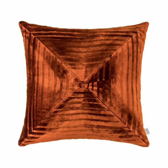 Kare, dekoratif, kendinden çizgili düğmeli yastık.