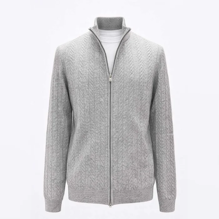 Dik Yakalı, Çift Yönlü Fermuar Ön Kapatmalı, Saç Örgü Detaylı Triko Hırka.