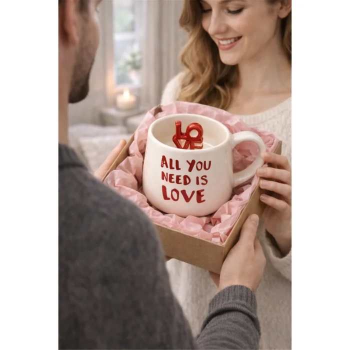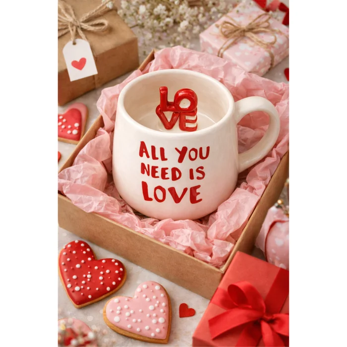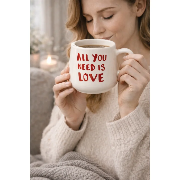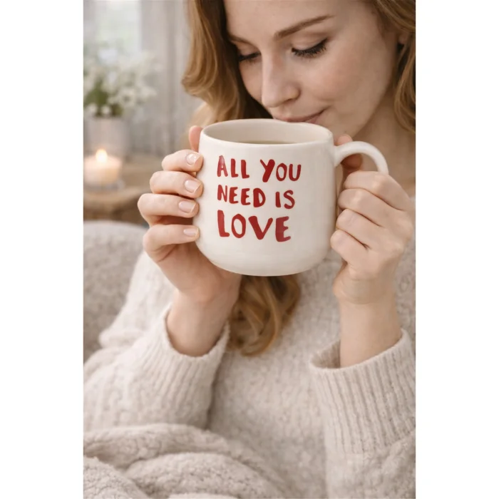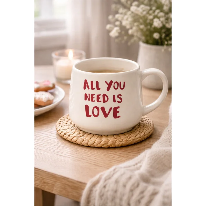“Love” temalı yazı detayıyla tasarlanmış seramik kupadır. Günlük kullanım ve hediye için uygundur. Sıcak ve soğuk içeceklerde kullanılabilir.