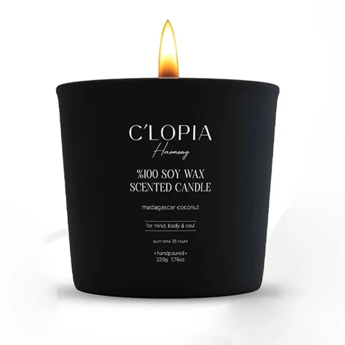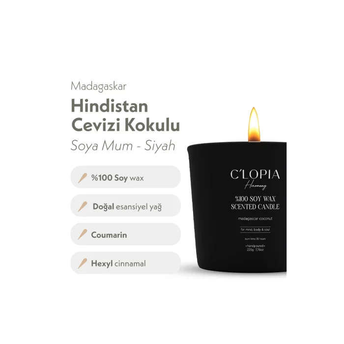 Ürün: C'lopia Madagaskar Hindistan Cevizi Kokulu Soya Mum - Siyah