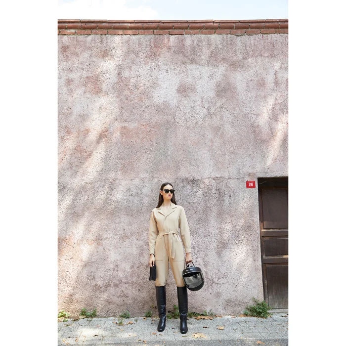 Kendi zirh file çantasının içinden çıkan,Gömlek yakalı, gizli patlı Safari tulum.