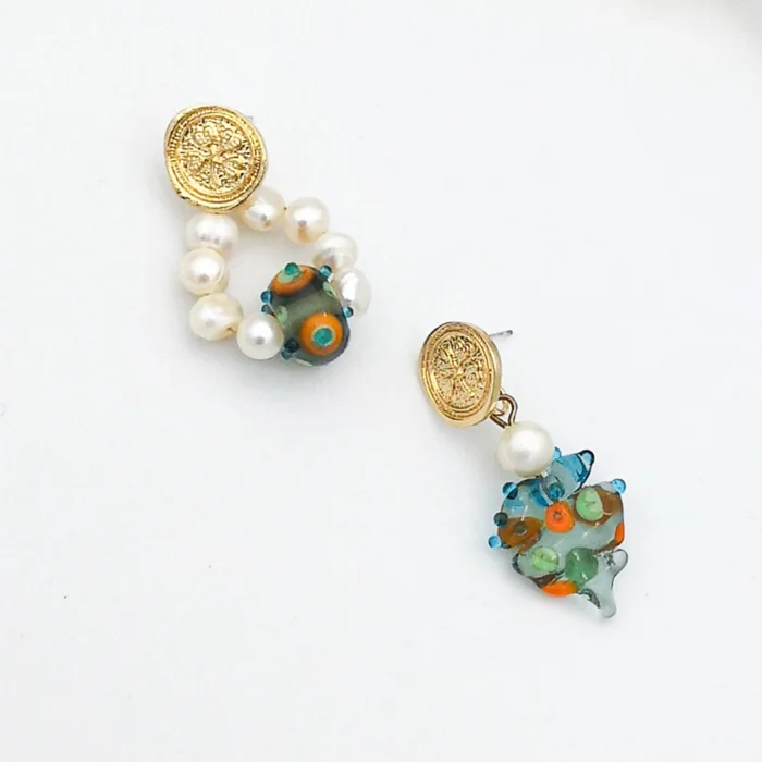 Tatlı su incisi kullanılarak üretilmiş, zarif ve doğal bir ışıltı sunar; İnci küpeler, her türlü kıyafetle uyum sağlayarak şıklığınızı tamamlar; Özel tasarımıyla dikkat çeken bu küpeler, Murano cam işçiliğinin eşsiz detaylarıyla göz alıcı bir görünüm kazandırır; İnci taşı, zarafetiyle her anınıza değer katar ve sofistike bir dokunuş sağlar;