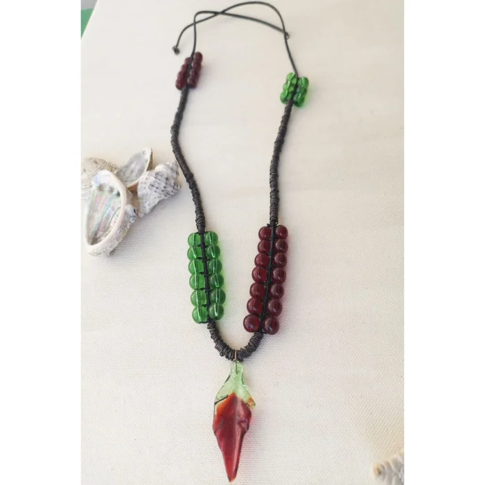 Ürün: Murano Kahverengi Yeşil Yaprak Kolye