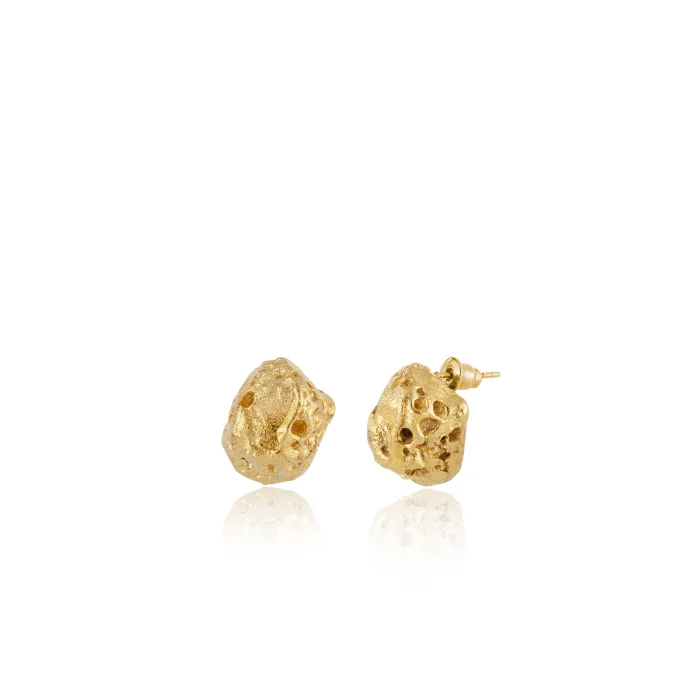 Bodrum Koleksiyonu. Malzeme: Bronz Üzeri 24 Ayar Altın Kaplama. Boyut: 2,1 cm x 1,9 cm