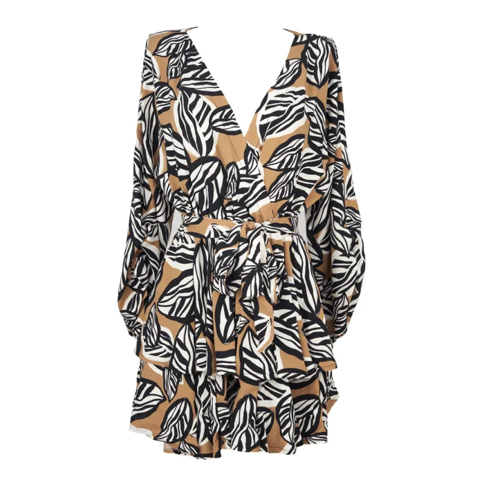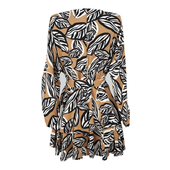 34-40 beden uyumludur. Beli lastiklidir. Volanlı çok renkli mini elbise