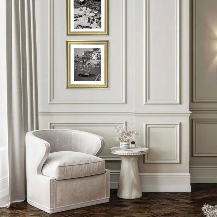 Gold çerçeveli, siyah-beyaz baskı fotoğraf