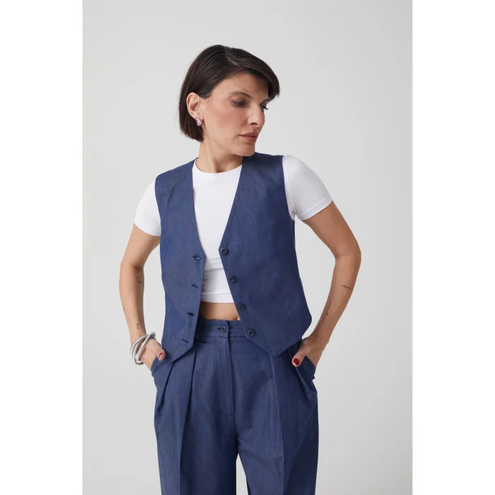 Ürün: Geniş Paça Pileli Denim Kumaş Pantolon