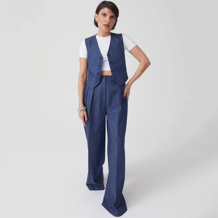 Ürün: Geniş Paça Pileli Denim Kumaş Pantolon
