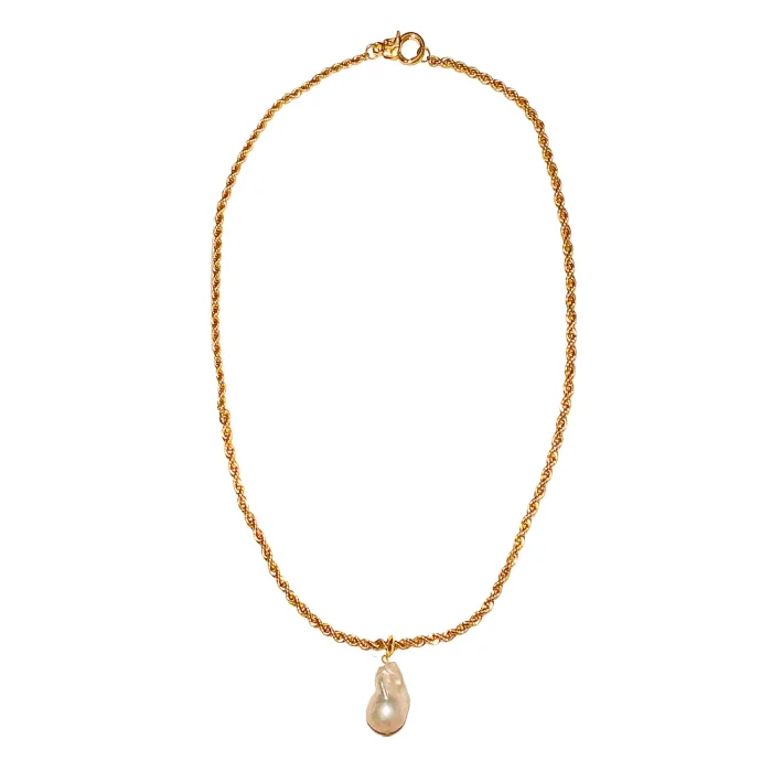 14 ayar altın kaplama burgu zincir ve barok inci kolye. 40 cm