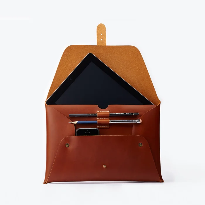 Dana derisinden tümü elde kesilen parçalar, tamamen el saraç işçiliği ve mumlu iplik ile dikilimiştir. Metal çıtçıt kapama ve rivetlerle kullanım kolaylığı ve dayanıklılığı arttırılmıştır.