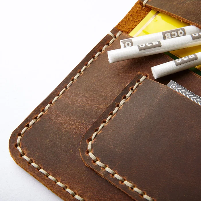Dana derisinden tümü elde kesilen parçalar, tamamen el saraç işçiliği ve mumlu iplik ile dikilimiştir.