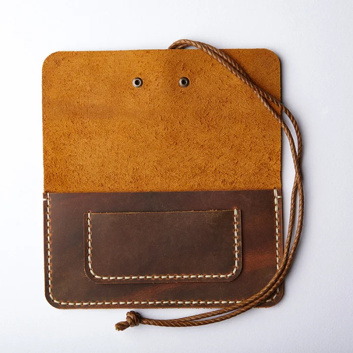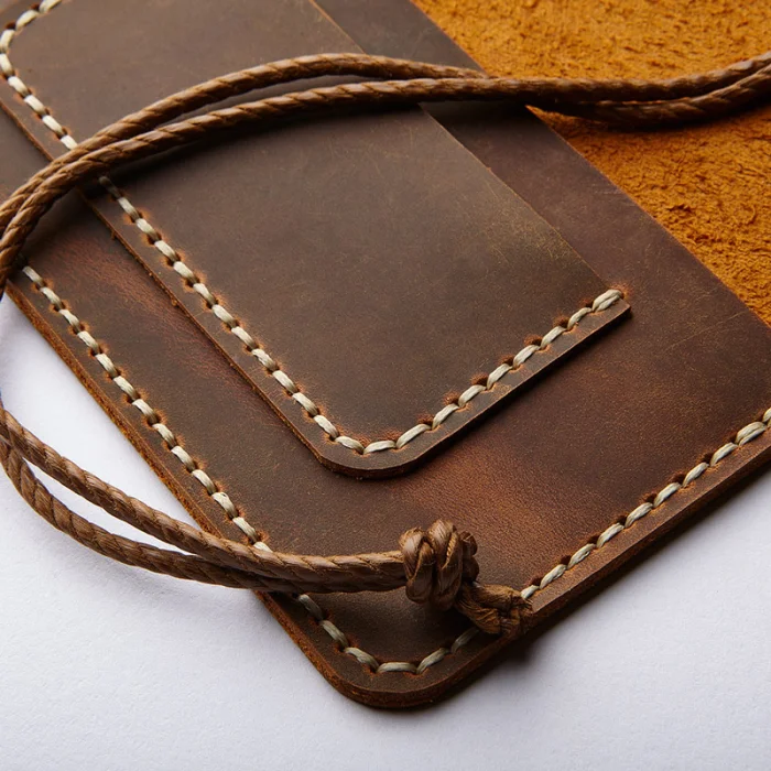 Dana derisinden tümü elde kesilen parçalar, tamamen el saraç işçiliği ve mumlu iplik ile dikilimiştir.