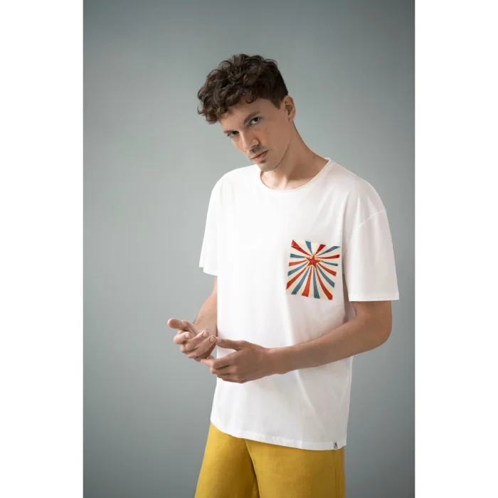 Malzeme: 100% Pamuk Bakım: makinede 30 derece, buharli utu, kurutmaya atmayniz, asarak kurutunuz. Model Ölçüleri: Boy: 1.89cm / Göğüs: 95 cm / Bel: 75 cm / Basen: 96 cm / Yaka: 40 / Beden L Sirk temalı yıldız desenli keten cepli tshirt. Oversize kesim.