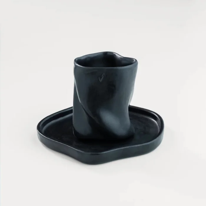 Doğadan ilham alan bu el yapımı siyah seramik set, huzur verici tonlarıyla bulunduğu ortama tazelik katar. Organik kıvrımları ve sade tasarımıyla hem içecek sunumlarınızı özel kılar hem de dekoratif olarak şık bir detay oluşturur. Doğallığı sevenler için eşsiz bir tercih.