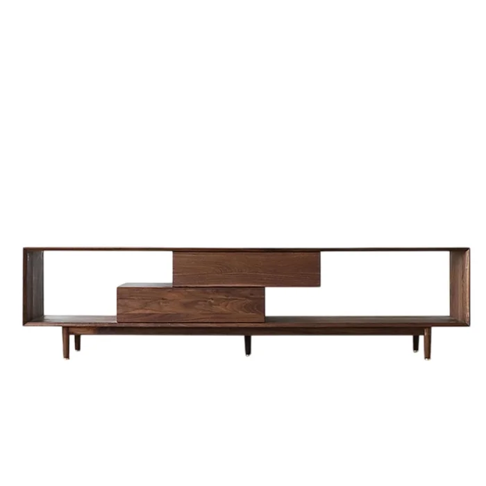 Masif ahşap malzemenin sıcaklığı ve zarafetini modern bir tasarımla buluşturan bu TV ünitesi, hem fonksiyonel hem de estetik bir çözüm sunuyor.