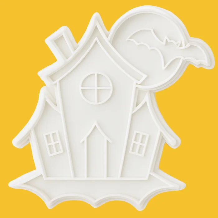 Ürün: Perili Ev Ve Yarasa Kurabiye Kalıbı Ve Baskı Seti - 2 Parça Pla Fondan Ve Kil Kesici