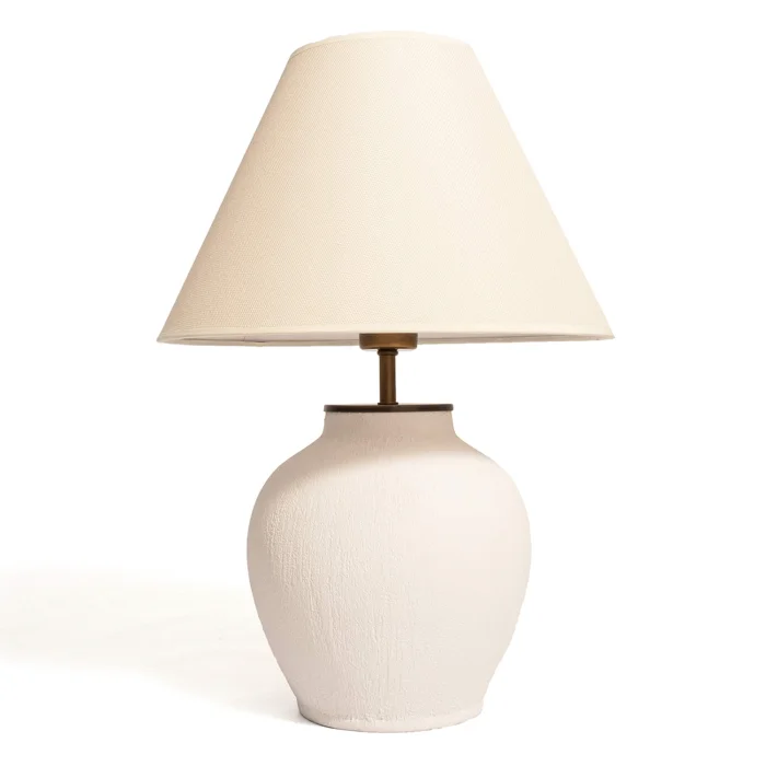 - Malzeme: Terracotta gövde ve keten abajur başlığı