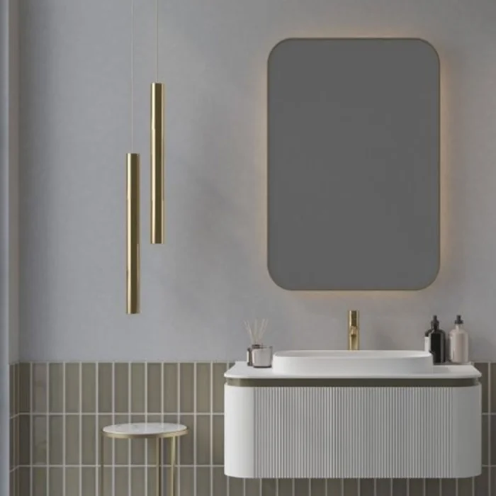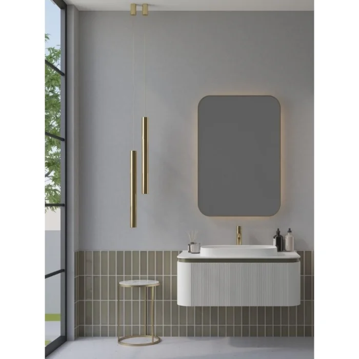 Ayna: Altın Renk Eskitme Boya arkadan Led aydınlatmalı